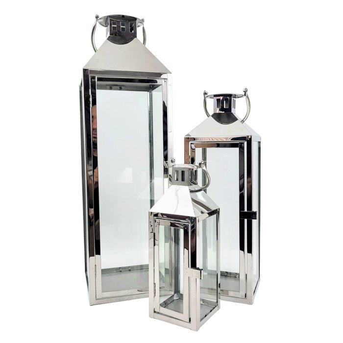 Lanterna Decorativa Marroquina Prata Inox 60/43/29cm Kit 3pc