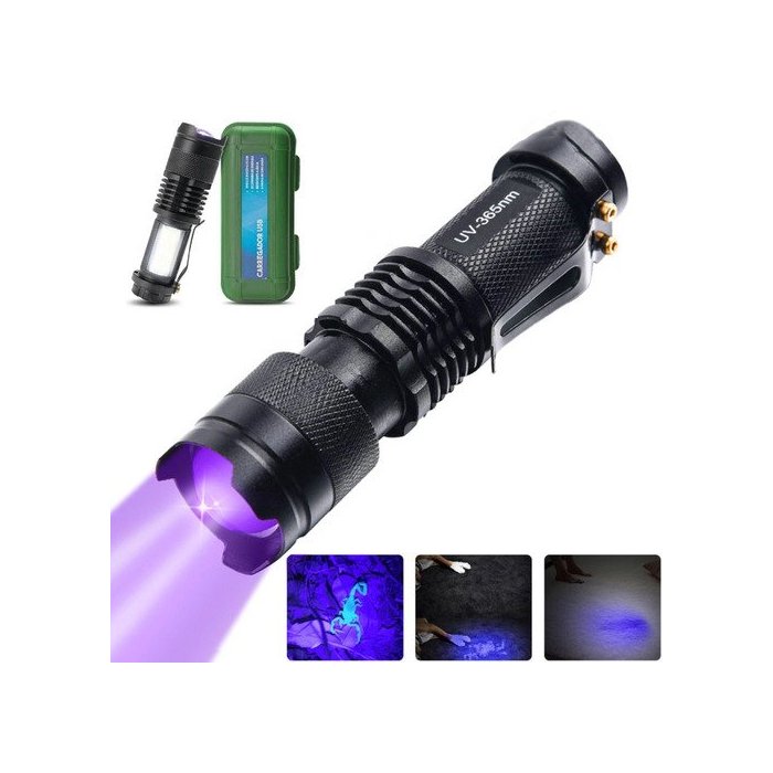 Lanterna Led Luz Negra Ultravioleta Uv Escorpião 2 em 1 Luz Branca Recarregável Tx Luz Negra Ultravi Preta