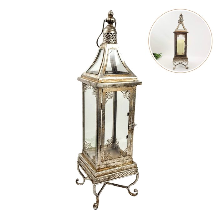 Lanterna Marroquina Decorativa Prata Envelhecida 57x16cm
