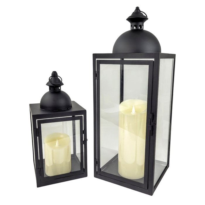 Kit 2 Lanternas Marroquinas Decorativas de Metal Preto com Vidros (P e G) | Inigual Decor
