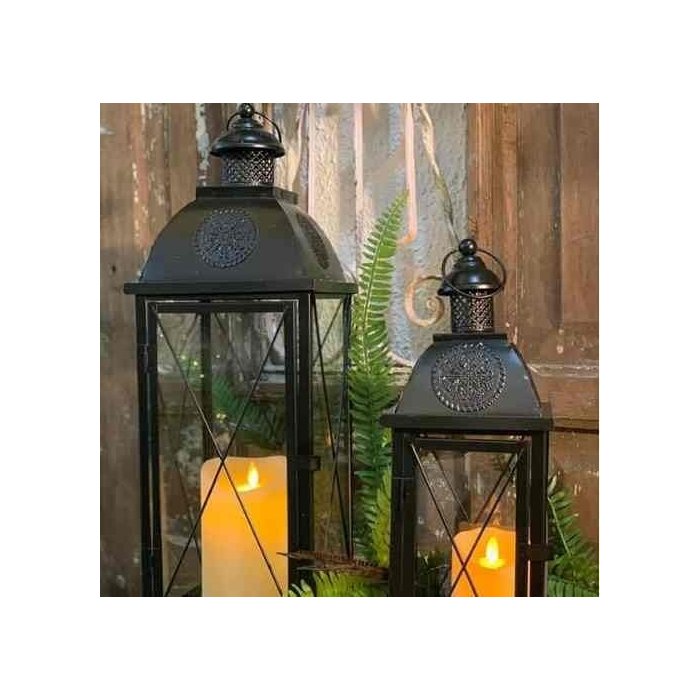 Conjunto com 2 Lanternas Marroquinas - Cor Pretas + Velas de Led em parafina com movimento de Chama Viva