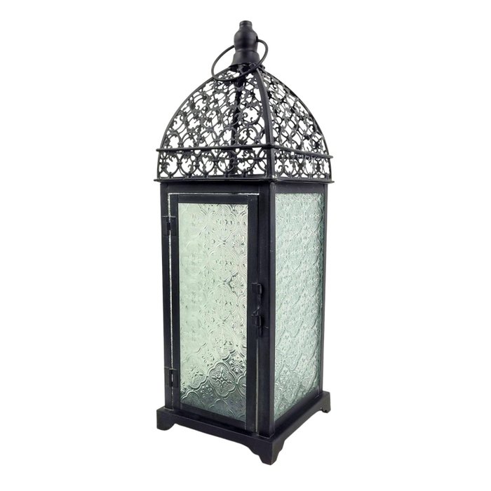 Lanterna Marroquina Preta Decorativa 41x12cm Envelhecida Preta