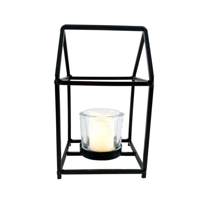 Super atual esse Lanterna em ferro preto com suporte para vela de vidro vai dar um toque moderno e romântico na sua decoração.
