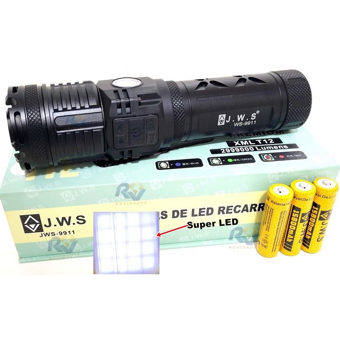 Lanterna de LED CREE T12 XML Recarregável Alta Intensidade