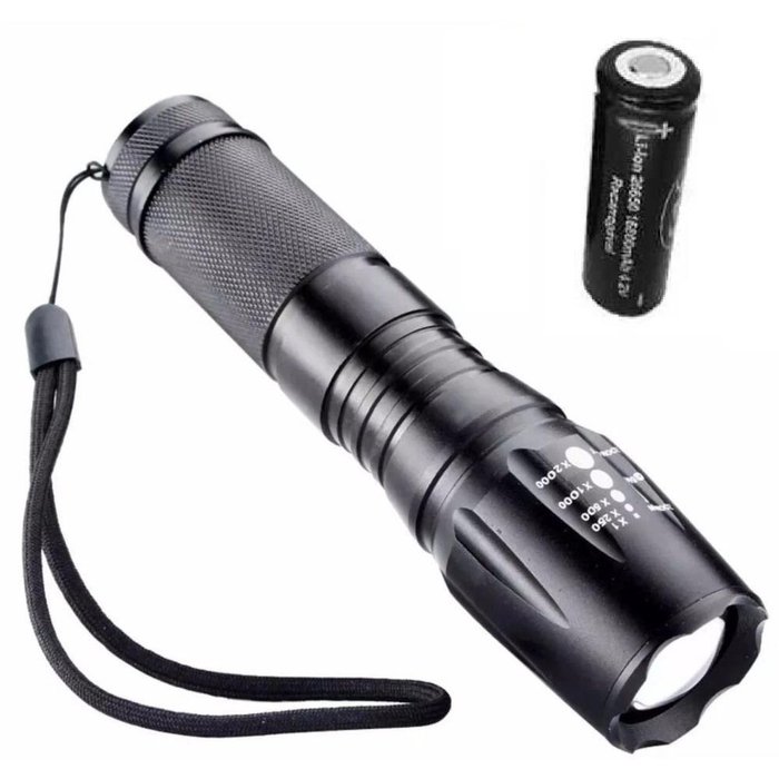 Lanterna Tatica Police Militar T6 X900 com Bateria RecarregavelA Lanterna Tatica Militar X900 é composta por um dos leds mais avancados do mundo, o led Cree T6-l2 e fabricado com tecnologia americana.