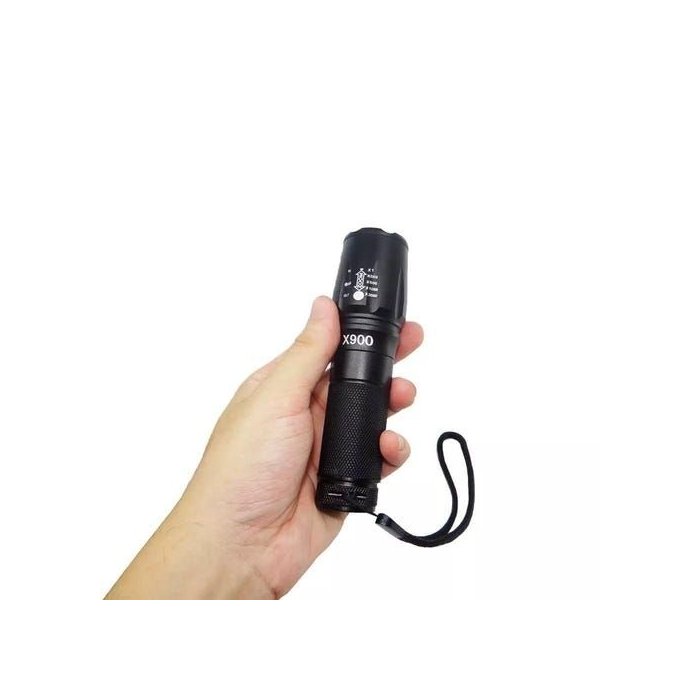 A Lanterna x900 possui lâmpada de Led T6 com vida útil de 100.000 horas.Zoom de foco regulável Feixe Ajustável de 1-2000x.