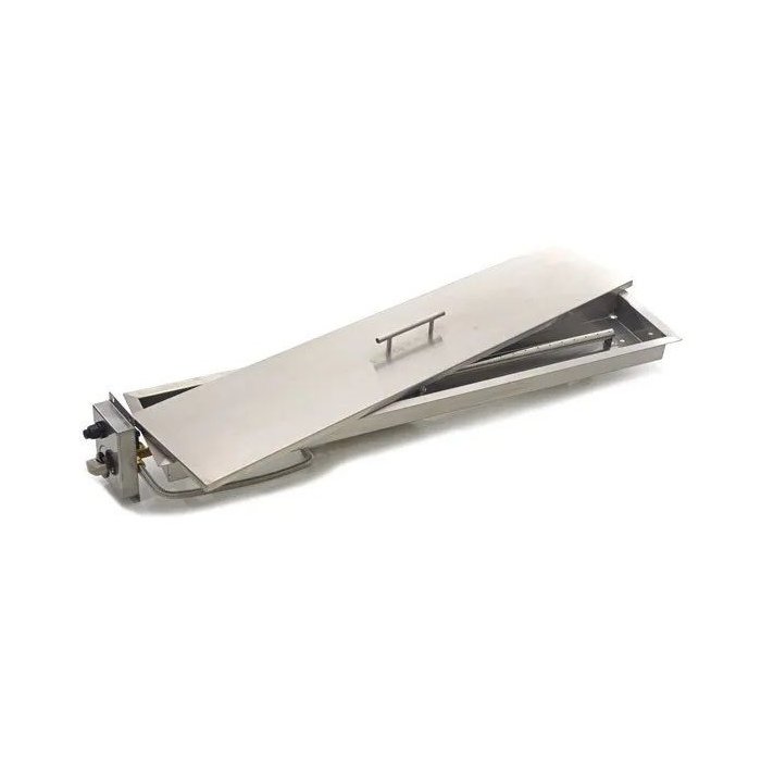 Fabricado em aço inoxidável AISI 304, o Fire Pit a Gás Queimador Retangular K3 Imports é fornecido para gás GLP, com adaptador para gás GN e possui acendimento automático com ignição a pilha. Acompanha tampa e possui abas que fazem o perfeito acabamento com a base. Sua instalação é feita por sobreposição, e sugerimos que o acabamento seja feito com cristais cinza ônix ou pedras vulcânicas.