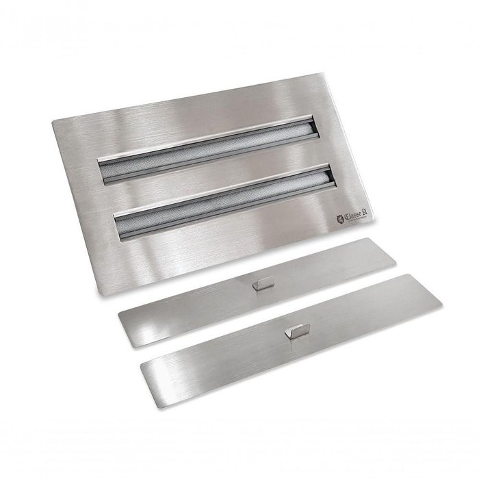 Obrigatório a instalação de vidro temperado 8mm de 56cmx17cm (vendido separadamente) em uma ou duas laterais, evitando que o fluxo de ar direcione a chama para apenas um dos lados do queimador (podendo ocasionar sobrecarga e deformação do inox).