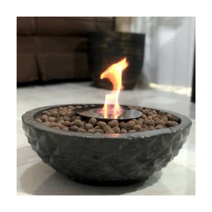 Feita em vaso de cimento de altíssima qualidade, moldura geométrica, lareira perfeita para aquecimento e decoração de ambientes externos.