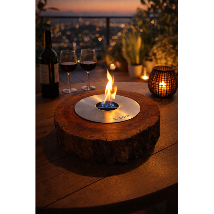 Lareira Ecológica Cozix Queimador em Aço Inox 304 20cm com Base em Madeira