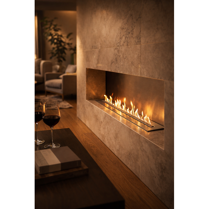 Seu sistema de combustão com álcool ou etanol dispensa chaminé, gás ou instalação complexa, tornando a lareira perfeita para salas, varandas, apartamentos, áreas gourmet e projetos de arquitetura moderna.