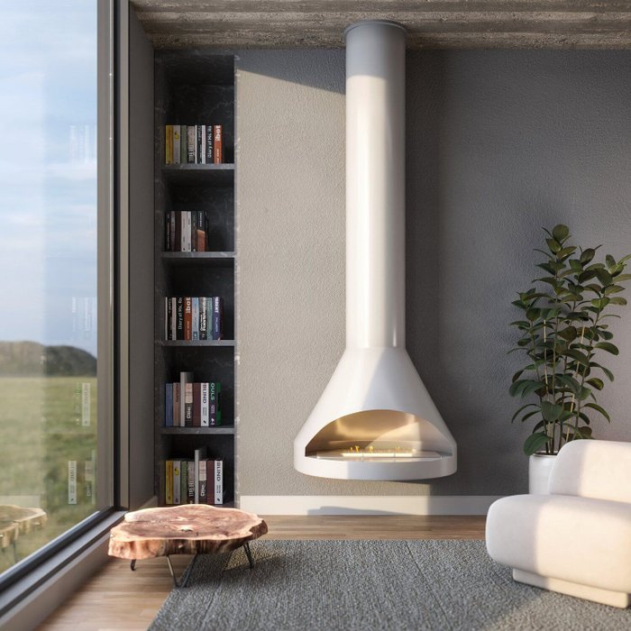 Lareira Suspensa com Queimador Eco Inox Branco
