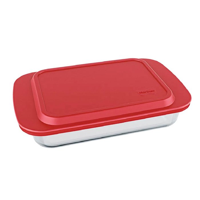 Lasanheira de vidro retangular Marinex 5L com tampa plástica