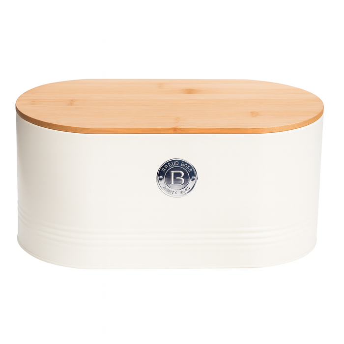 Lata Redonda Porta Pão com Tampa de Bambu - Creme Redondo Creme