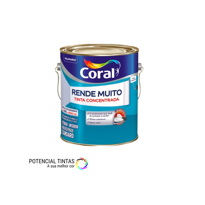 A tinta Rende Muito O Original, é uma tinta de alta consistência que permite uma diluição superior aos produtos convencionais. Você consegue 50% a 80% de diluição com água, podendo pintar até 500 m² (lata) por demão.