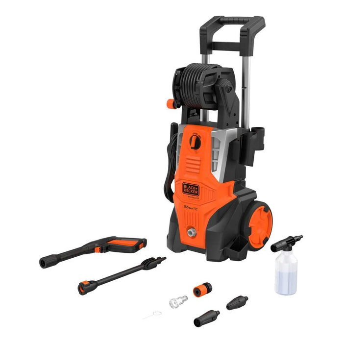 Carretel Integrado → evita enrolar mangueira na mão, mantendo tudo organizado e pronto para o próximo uso.