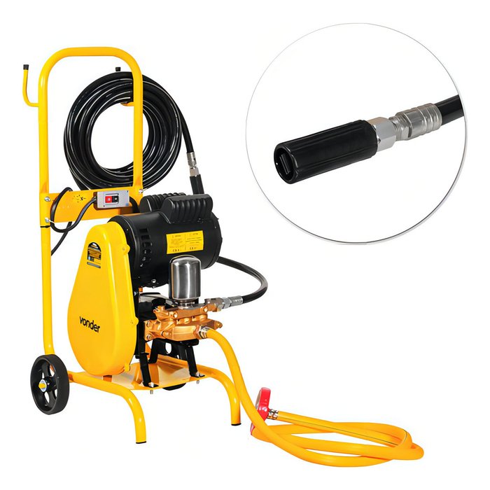 Indicado para limpeza de açougues, carros de passeio, clínicas, prestadores de serviço de limpeza, hospitais, lava rápidos, bicicletas, carros utilitários, condomínios, escolas entre outros locais. O equipamento é expedido de fábrica ligado em 220 V~. Para uso em 127 V~, procure uma Assistência Técnica Autorizada VONDER ou um profissional qualificado para realizar a mudança de tensão. Verificar o esquemade ligação conforme consta no motor.