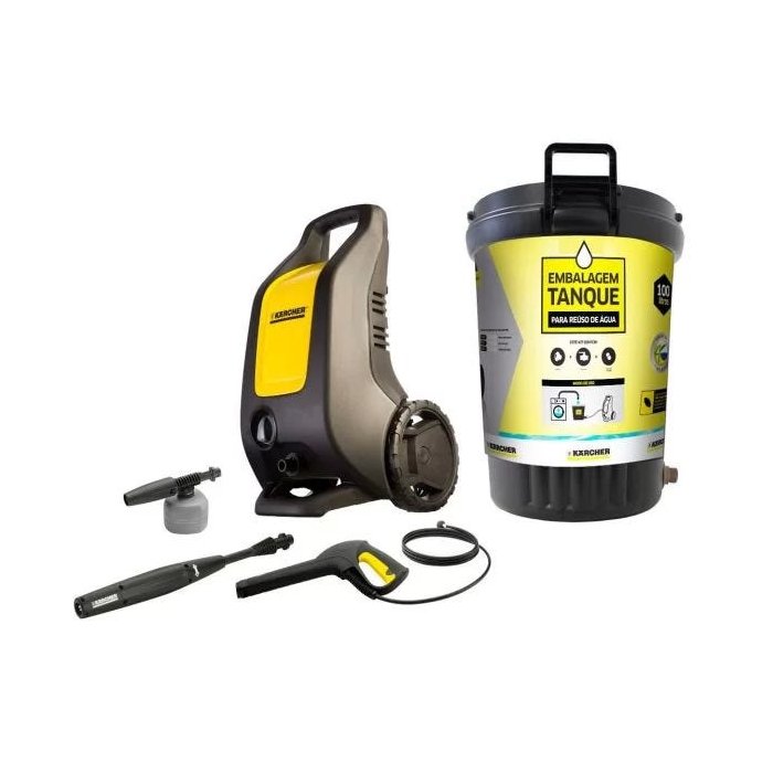Lavadora de Alta Pressão K 2500 vem com kit embalagem tanque, ideal para reutilização de água. A primeira lavadora com kit água de reúso e mais uma solução de limpeza Kärcher.