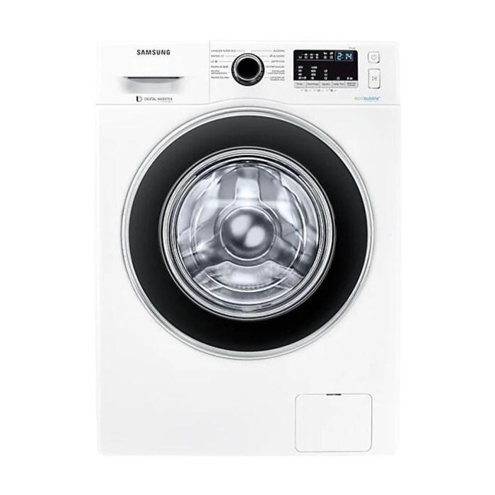 A Lavadora de Roupas Samsung WW4000 é branca e possui porta transparente, que proporciona um design elegante e se adequa muito facilmente em casas modernas, constituindo um ambiente mais harmônico. Com o Motor Digital Inverter, as lavagens são mais silenciosas, com menos vibrações e com sistema de absorção de choque.