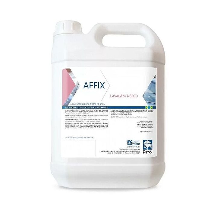 Affix é um limpador líquido a base de água para lavagem a seco que proporciona limpeza, brilho e proteção, devido a um agente limpador e à presença, em sua formulação, de silicone emulsionado, que forma na superfície uma película protetora. Por ter alto rendimento, fornece economia e praticidade para lavagem em locais onde não é possível utilizar água, dando um acabamento perfeito após sua aplicação.