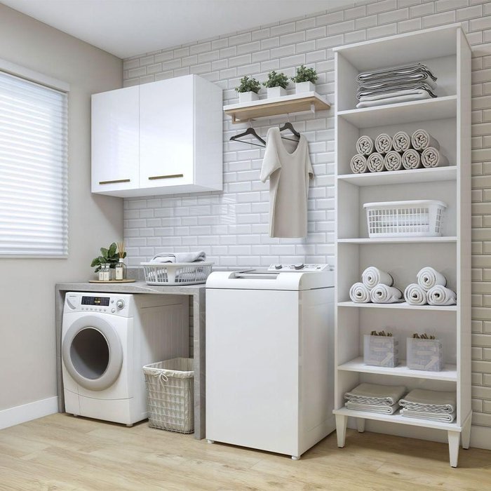 Lavanderia Belém 1 Armário Multiuso E 1 Aéreo Kaiki Móveis Branco