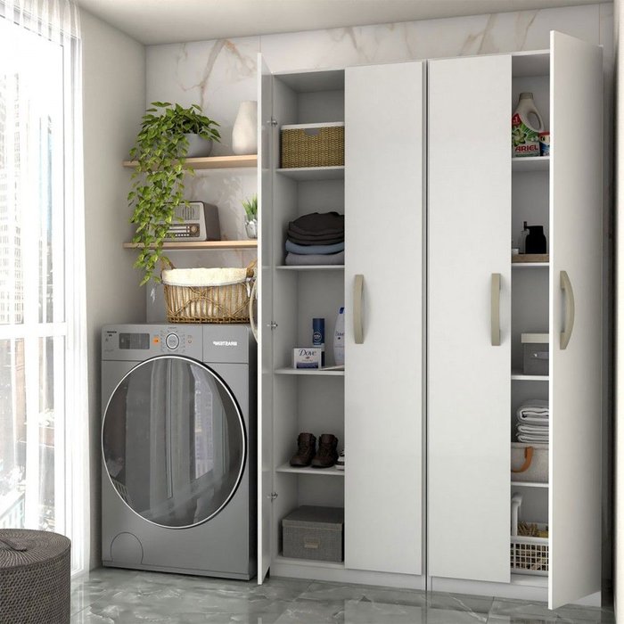 Lavanderia Completa Andorra 4 Portas 8 Prateleiras Branco Neve - Panorama Móveis