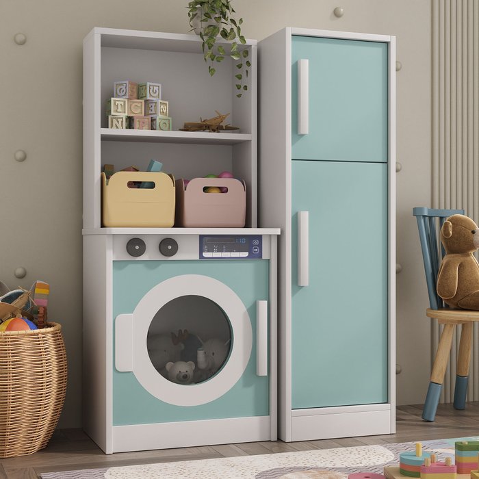 Lavanderia de Brinquedo para Crianças com Armário Infantil 100% Mdf:menta
