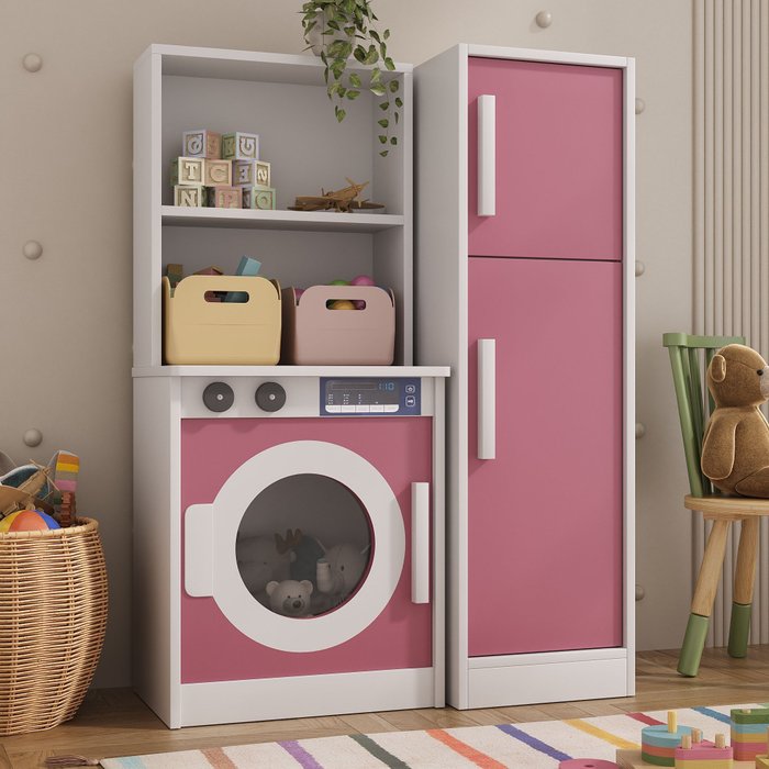 Lavanderia de Brinquedo para Crianças com Armário Infantil 100% Mdf:rosa