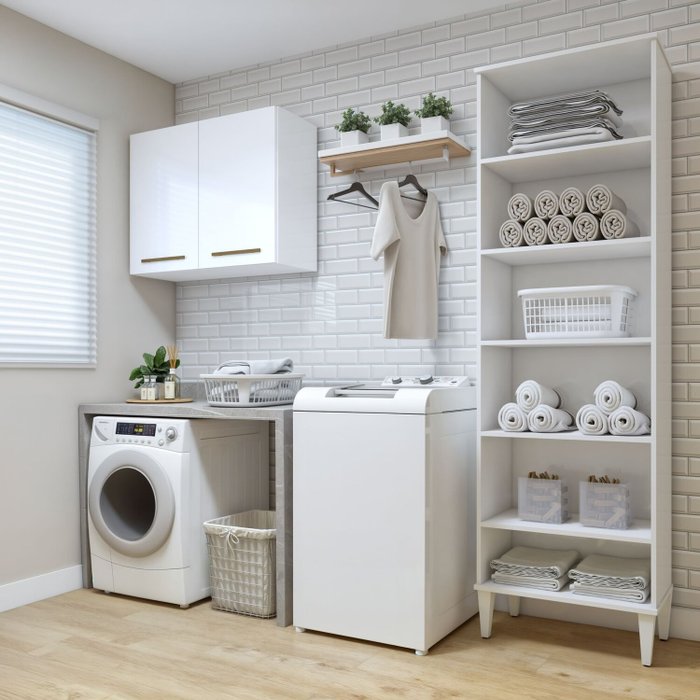 Lavanderia Modulada 1 Armário Multiuso e Armário Aéreo Belém Branco