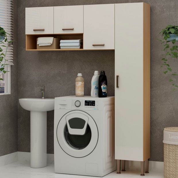 Lavanderia Modulada 2 Peças, 1 Armário Alto e Aéreo de 120cm Essência 100% MDF