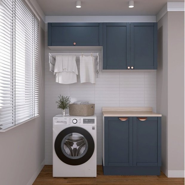 Lavanderia Modulada 3 Peças 2 Armários Aéreos 3 Portas 1 Balcão Arizona CabeCasa MadeiraOriginals Azul/Branco