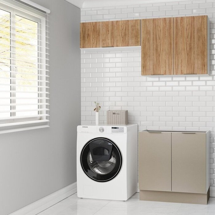 Lavanderia Modulada 3 Peças sem Tampo com Rodapé Ipanema CabeCasa MadeiraOriginals Fendi/Acácia