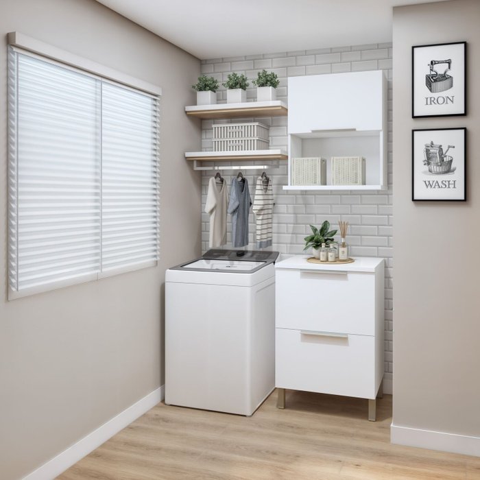 Lavanderia Modulada Armário Aéreo com Balcão Tex 101 Branco