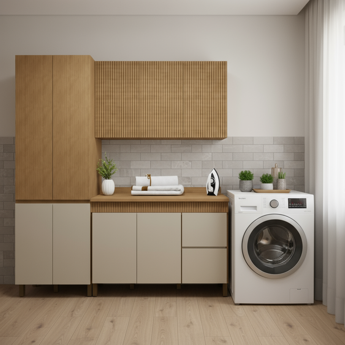 Lavanderia Modulada Armário Multiuso, Balcão e Armário Aéreo Dakota Cinamomo/Off White