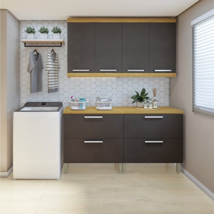 Lavanderia Modulada com 2 Balcões e 2 Armários Aéreos 100% Mdf Burguesa