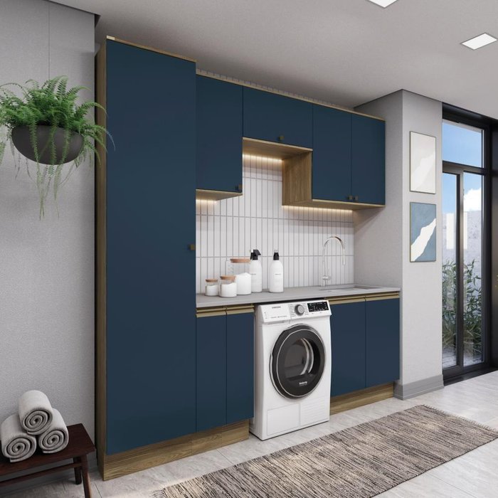 Lavanderia Modulada Kappesberg Celeste 7 Peças Nogueira/azul 230cm Nogueira/Azul Profundo