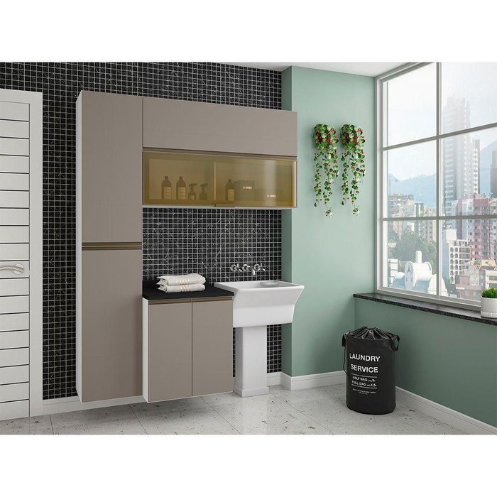Lavanderia Suprema Pérola 3 Peças Com Tampo Luciane Branco Polar Com Connect