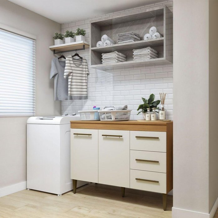 Lavanderia Petrópolis Balcão 2 Portas 3 Gavetas Kaiki Móveis Nature com Off White