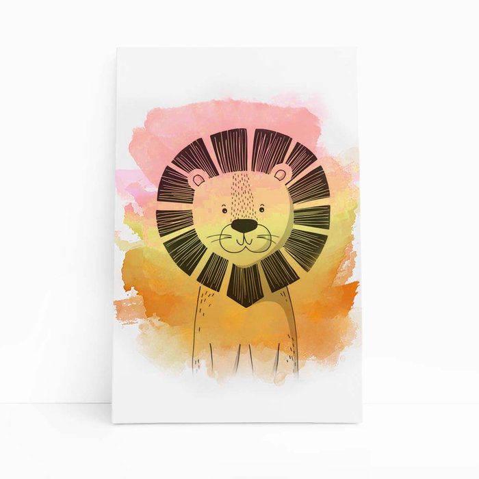 Leão Desenho Animais Laranja Infantil Quadro Canvas 100x70cm