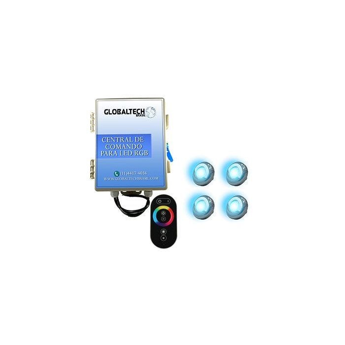 Led Piscina - Kit 4 Led Tholz 9W Inox RGB + Central + Controle Touch
