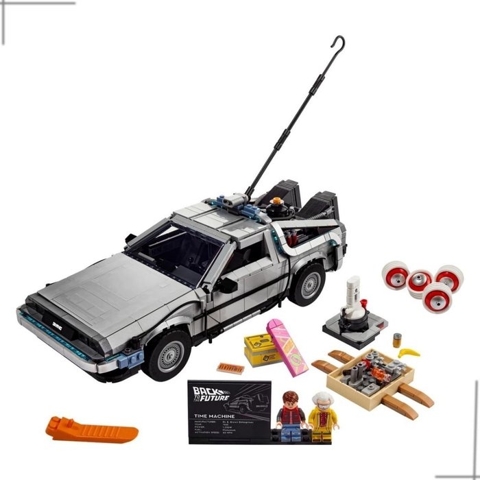 Doc e Marty viajaram a 140 quilômetros por hora, mas você pode levar o tempo que quiser, construindo todos os detalhes impressionantes deste conjunto. As características autênticas incluem portas de gaivota que abrem, pneus que dobram para o modo de voo, condensador de fluxo luminoso, datas impressas no painel, capô que abre, e também uma prancha voadora e placas que podem ser trocadas. Com as minifiguras de Doc e Marty, este modelo cria a peça de exposição perfeita para prestar tributo a seu filme favorito.