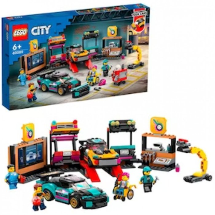 O Lego City: Oficina de Personalização de Carros inclui uma oficina com muitas funções legais e 2 carros de brinquedo personalizáveis, onde as podem escolher entre uma série de motores e seções modulares dianteiras e traseiras, com diferentes faróis, pára-choques e aerofólios para criar seus próprios designs.