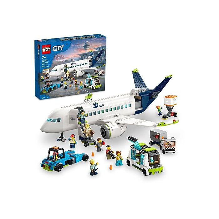 Conjunto de construção de avião e veículos de apoio em solo: O conjunto LEGO City Avião de Passageiros (60367) vem com detalhes realistas e funções. Recursos e funções: As crianças podem operar o caminhão de catering para embarcar suprimentos e remover o teto da aeronave para acessar seu cockpit detalhado, assentos, corredor, banheiro e área de catering. Um presente para fãs de aviões de brinquedo: Este brinquedo criativo é um divertido presente de férias ou aniversário para crianças a partir de 7 anos. Espaço para brincadeiras: O Avião de Passageiros mede mais de 19 cm de altura, 47 cm de comprimento e 44 cm de largura. Acessórios divertidos para aumentar a brincadeira: Os acessórios de minifiguras LEGO incluem uma mala, câmera, mochila, pasta, walkie-talkie, 2 latas de bebidas e 2 copos. Uma experiência de construção interativa: As crianças podem ampliar, girar e visualizar os modelos deste conjunto de todos os ângulos enquanto os constroem com o aplicativo LEGO Builder para smartphones e tablets.