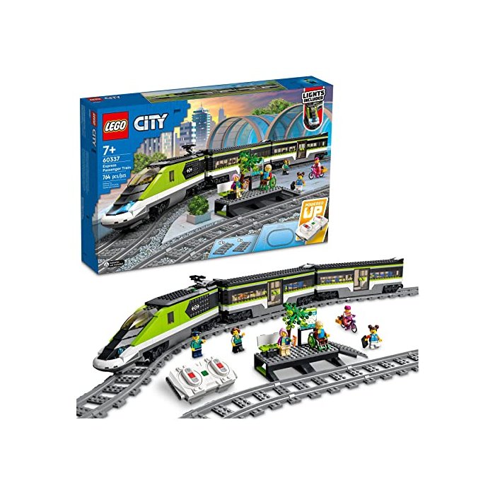All aboard! Aqui vem o conjunto LEGO City Trem de Passageiros Expresso (60337), com um trem de brinquedo com controle remoto para crianças a partir de 7 anos. A locomotiva com controle remoto e faróis funcionais reguláveis e tecnologia LEGO Powered Up é perfeita para impressionar qualquer criança ou entusiasta de trens. Este conjunto inclui um vagão-restaurante, um vagão de passageiros, plataforma de estação, 24 peças de trilho LEGO e 6 minifiguras. Há também acessórios como laptop, telefone, bicicleta e capacete, cadeira de rodas, maleta, mochila e um cachorro-quente de brinquedo para inspirar horas de brincadeiras temáticas de trem. As crianças podem embarcar no vagão-restaurante para tomar uma bebida e comer um croissant durante a viagem ou entrar no vagão de passageiros, onde há espaço para sua bagagem e bicicleta. Depois de embarcar, elas podem se sentar em sua mesa preferida e aproveitar o passeio! Este incrível brinquedo de trem LEGO vem com um guia de construção fácil de seguir para cada modelo. Crianças a partir de 7 anos podem escolher construir sozinhas ou juntar-se a amigos e familiares para uma incrível experiência de construção e brincadeira em grupo. Os conjuntos LEGO City levam as crianças ao centro da ação com veículos realistas, estruturas ricas em recursos e personagens inspiradores. As crianças aprendem sobre o mundo ao seu redor enquanto encenam histórias e cenários que retratam a vida de forma divertida e emocionante