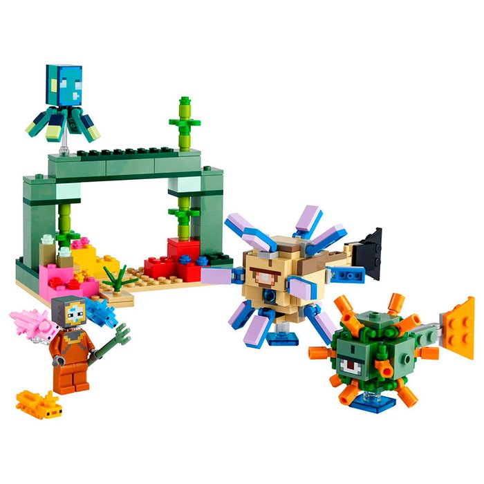- Aventura subaquática: LEGO® Minecraft® A Batalha do Guardião (21180) leva os jogadores em uma missão criativa no fundo do oceano, repleta de personagens e recursos do jogo de sucesso.