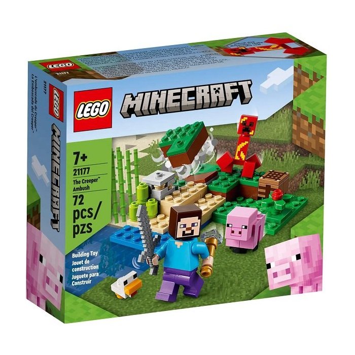 LEGO Minecraft A Emboscada do Creeper está repleto de personagens, acessórios e recursos para inspirar aventuras ilimitadas e imaginativas de Minecraft.