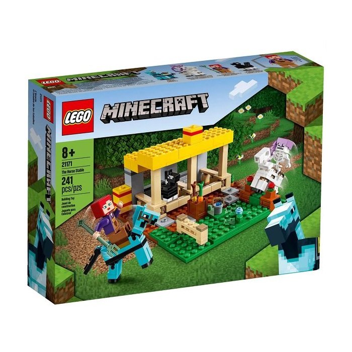 LEGO Minecraft O Estábulo do Cavalo (21171) combina toda a diversão e aventura do popular jogo on-line com as infinitas possibilidades criativas das peças LEGO e a alegria de cuidar de cavalos.