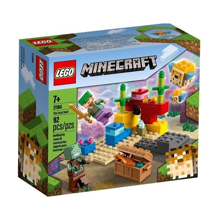 - O cenário colorido de recife de coral vem repleto de autênticos detalhes Minecraft e acessórios espantosos, tais como a arca do tesouro escondido que abre para mostrar um peixe e uma pérola.