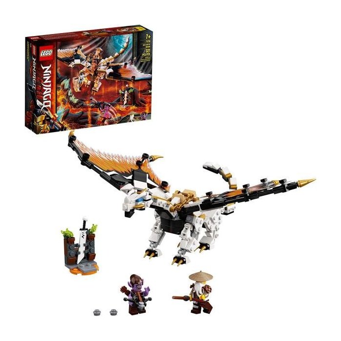 Voe com o herói wu no seu bravo dragão em batalhas cheias de ação dentro das masmorras de shintaro coloque o herói wu montado no dragão e voe para a batalha enquanto luta contra o temível gleck pela valiosa lâmina de marfim da libertação. Esteja atento quando o gleck apontar para você com a sua besta é fundamental que o herói wu triunfe para garantir a sua fuga deste assustador mundo subterrâneo incrível brinquedo lego® ninjago dragão de combate de wu (71718) e 2 minifiguras para recriar a ação da série de tv ninjago.