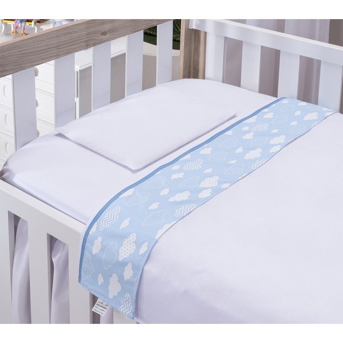 Lençol de Berço para Bebe Menino Azul 3 Peças Algodão Safari Animais:azul Nuvem